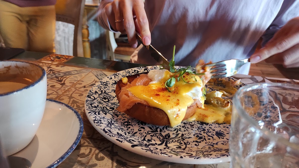 Food-wise, the menu leans into comforting favorites done right. Avocado toast arrives fresh and satisfying, striking a nice balance between light and filling. The eggs Benedict is another standout, neatly plated and perfect for brunch lovers who want something classic but dependable. For those who prefer a hearty start to the day, the breakfast plate offers a fuller option that feels both familiar and well thought out. Each dish fits naturally into the overall vibe-unpretentious, tasty, and made to be enjoyed without fuss.